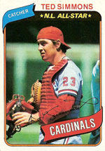 As a Cardinal, Simmons hit .298, drove in more than 90 runs six times and had an on-base percentage of .366. He produced 1,704 hits in 1,564 games.