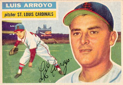 Arroyo’s second half of the 1955 season wasn’t as successful as his first half. He lost his final four decisions, and five of the last six. He finished at 11-8 with a 4.19 ERA in 35 games (24 starts). Arroyo and Harvey Haddix were Cardinals co-leaders in complete games (nine apiece) and only Haddix (12) had more wins for St. Louis.