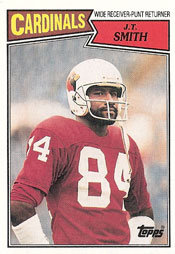Wide receiver J.T. Smith led the NFL in receptions (91) and receiving yards (1,117) and was third in touchdown catches (eight), helping the football Cardinals showcase one of the most potent attacks during the 1987 season.