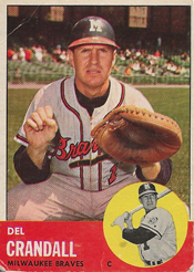 Playing in a lineup with Hank Aaron and Eddie Mathews, Crandall usually batted near the bottom of the order. He hit 26 home runs in 1955, including a walkoff grand slam against the Phillies.