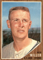 _ Bob Miller: He was one of two Bob Millers who pitched for the 1962 Mets. The former Cardinal was 1-12 that season. The other Bob Miller was 2-2. St. Louis’ Bob Miller went on to pitch 17 seasons in the majors for 10 teams. With the 1964 Dodgers, he led National League pitchers in appearances (74). Miller pitched in the World Series for the Dodgers in 1965 and 1966, and for the Pirates in 1971.