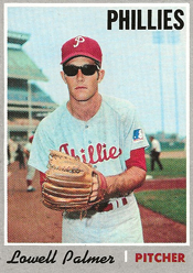 In 1970, Palmer appeared on a Topps baseball card wearing dark sunglasses.