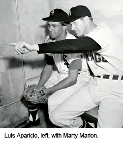 Marty Marion was the White Sox manager who brought Aparicio to the major leagues and made him the starting shortstop as a rookie in 1956.