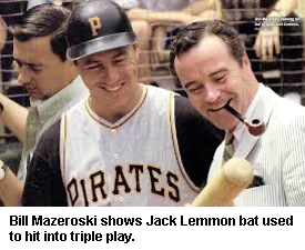 Seven years after hitting a walkoff home run for the Pirates in the ninth inning of Game 7 in the 1960 World Series against the Yankees’ Ralph Terry, Mazeroski was hired to make an out in the film “The Odd Couple.” Actually, the role required he make three outs _ with one swing.