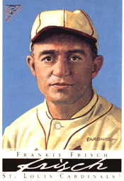 Frisch had been a standout second baseman for the Giants from 1919 to 1926. After he was dealt for Rogers Hornsby, Frisch continued his success with the Cardinals, helping them to four National League pennants and two World Series titles. He became their player-manager in 1933.